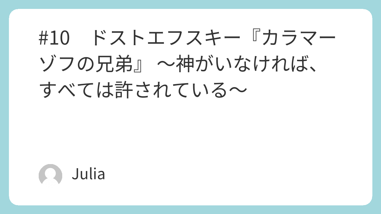 #10 ドストエフスキー『カラマーゾフの兄弟』 ~神がいなければ、すべては許されている~